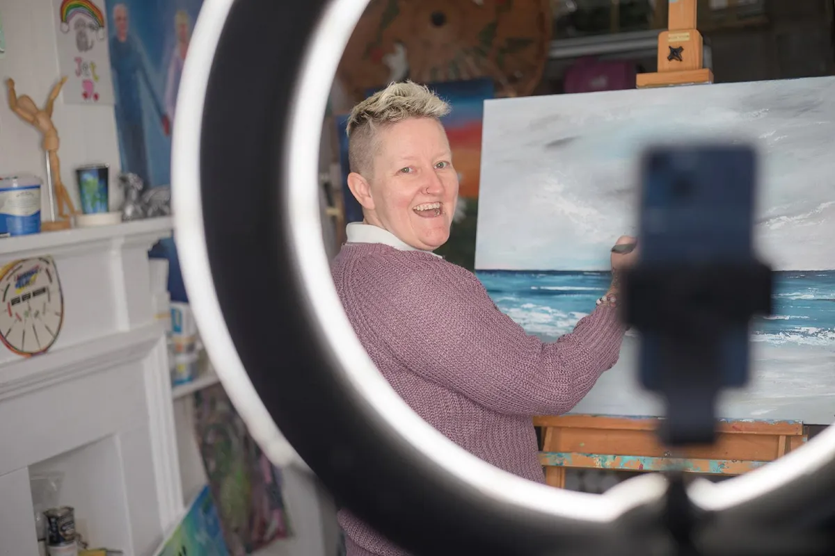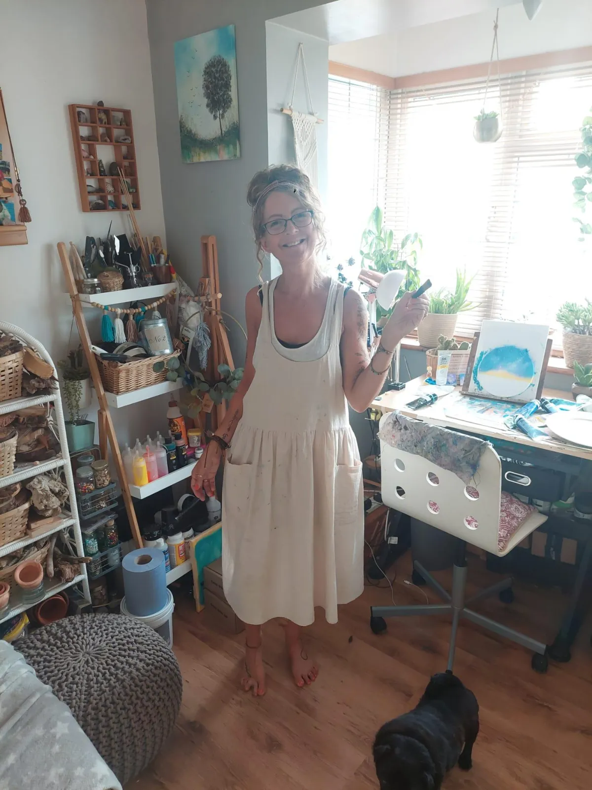 Now? My days are filled with colour, texture, and stories painted onto canvas. I teach others how to pick up a brush not to “get good,” but to feel free — because art isn’t about perfection; it’s about presence. About healing. About remembering who you are when the world stops screaming.
